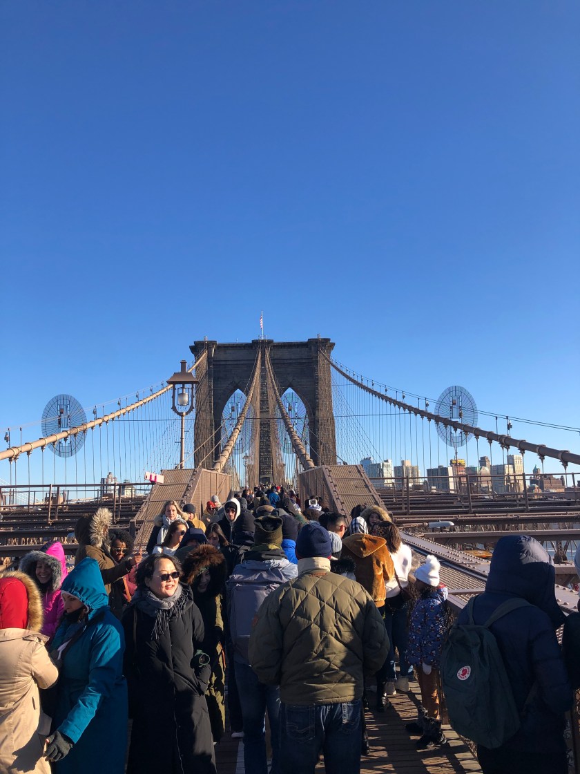 After the visit to 1 Police Plaza, we set out on the 8.5 mile concrete jungle fast paced walking tour. We left the plaza and hit the Brooklyn Bridge first. We started off with a decent size group (seen below) but ended with about 25.