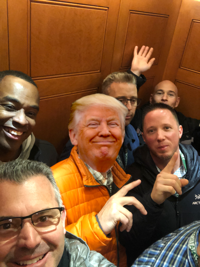 Going down to the bath tub we took the old elevator and ran into my man Donald. He was coming from Pelosi’s office.