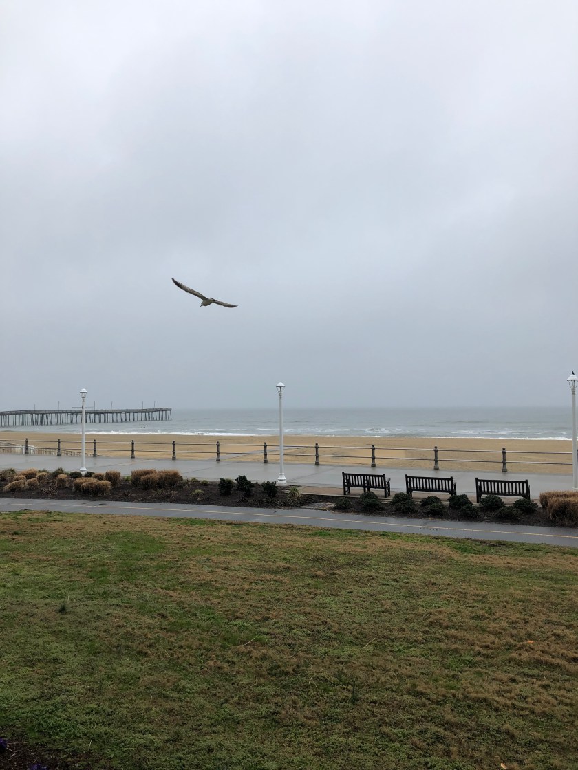 Woke up this morning to our beach front view in Virginia Beach. It is cloudy and rainy but it is suppose to clear up today and rain again tomorrow.